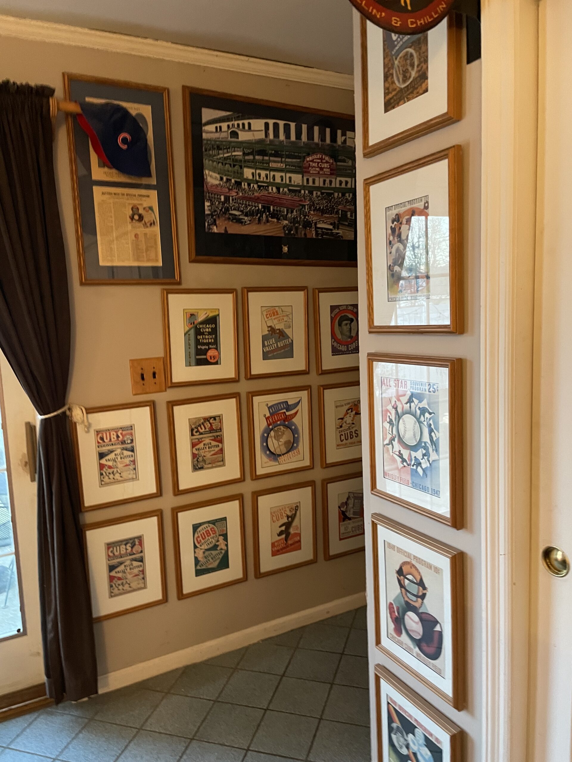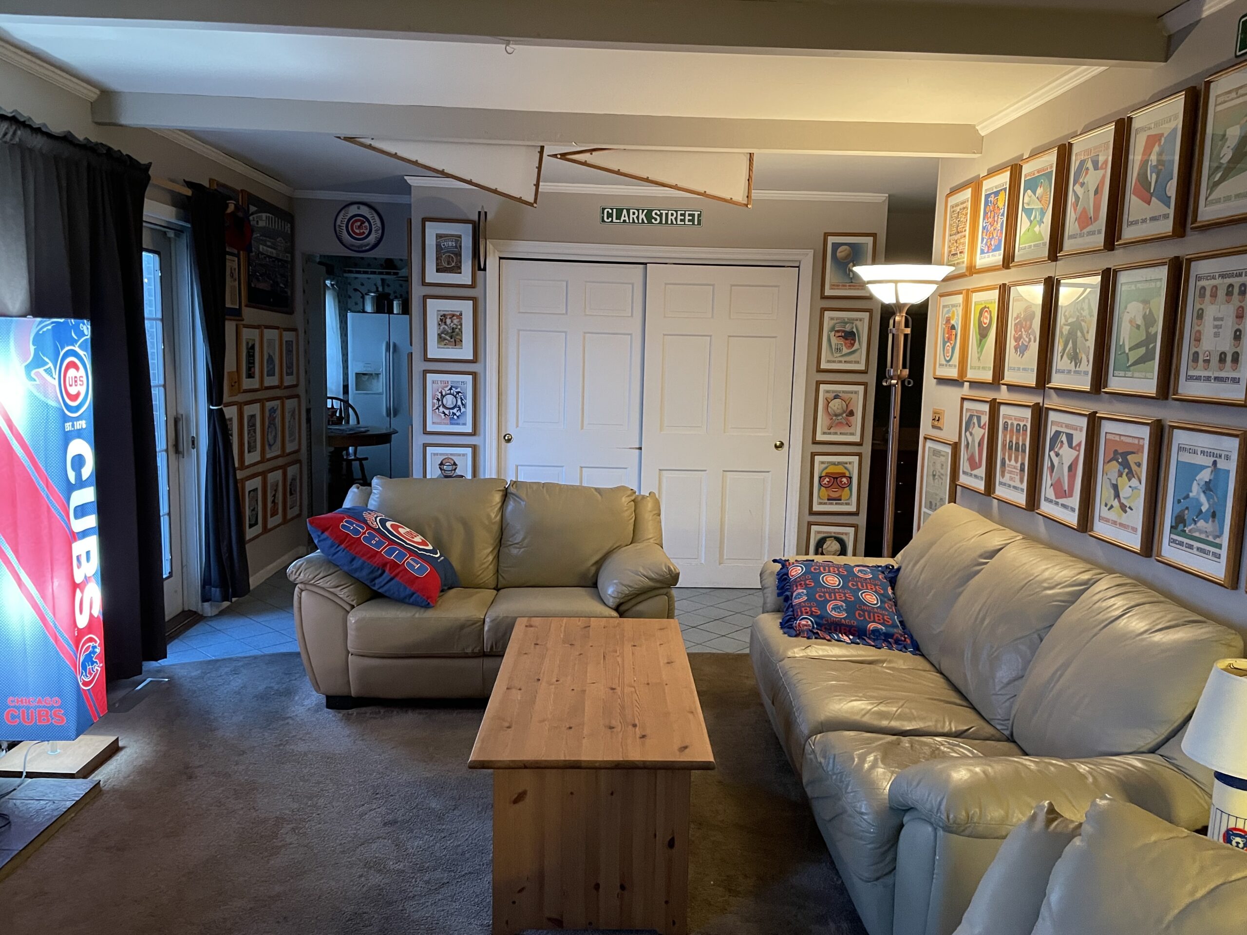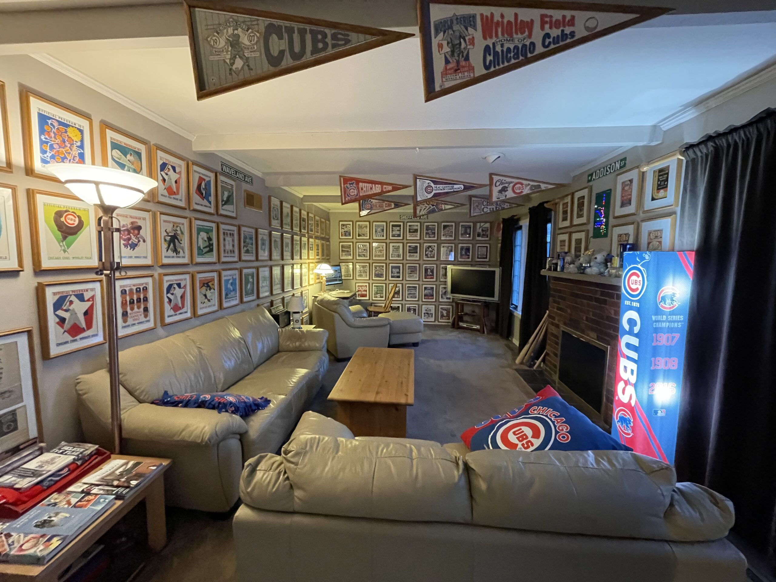 Special thought and attention to detail were given to each room's design. Many rooms have an individualized theme: sports/tropical basement, the “Cub” family room, Chicago/Jazz front room, DJ office dining room, the Western bedroom, and the upstairs library bedroom. After buying the house, it took Gary many months to strip wallpaper from every room, prepare and paint all the rooms, and then decorate the rooms appropriately.