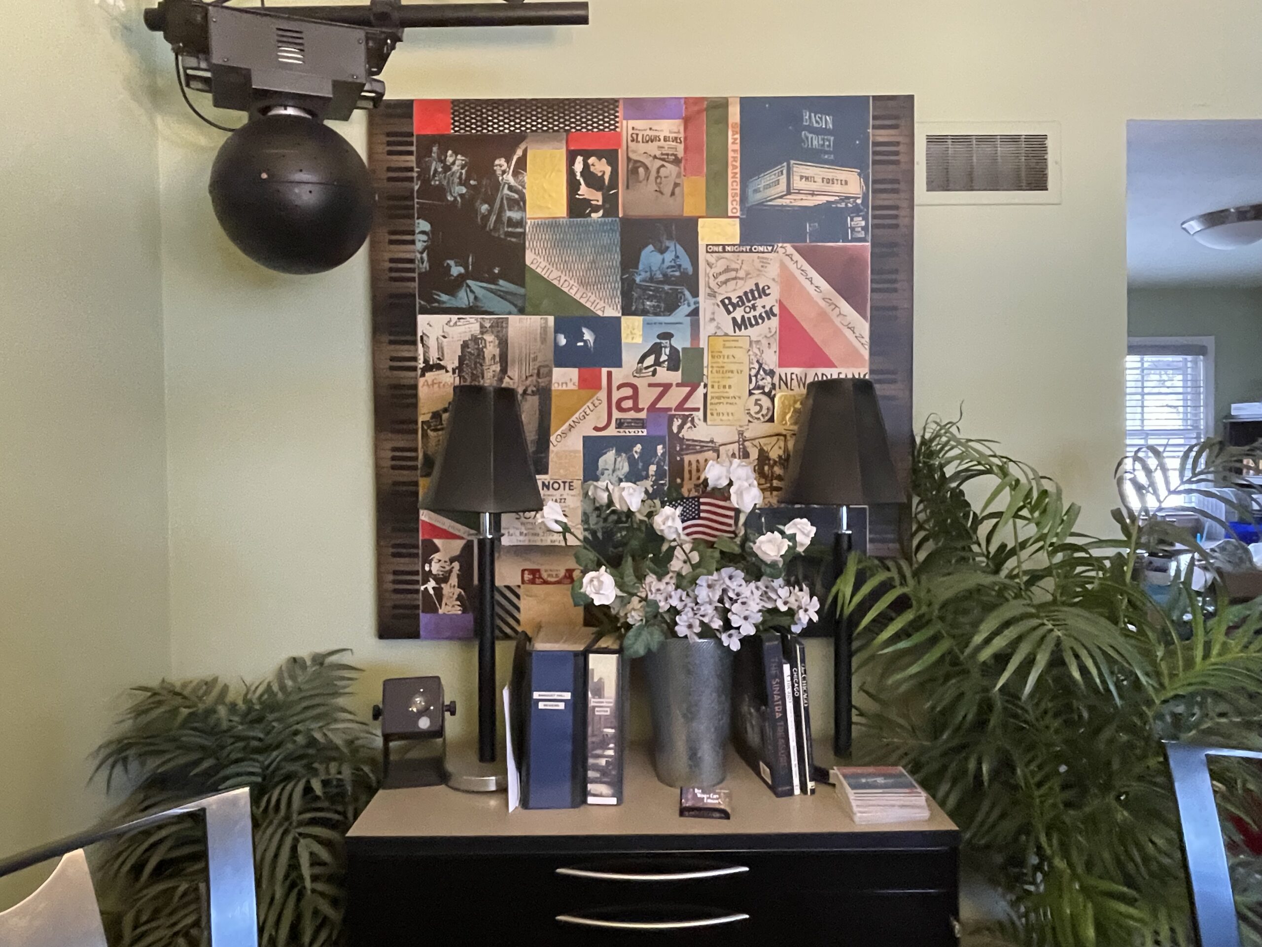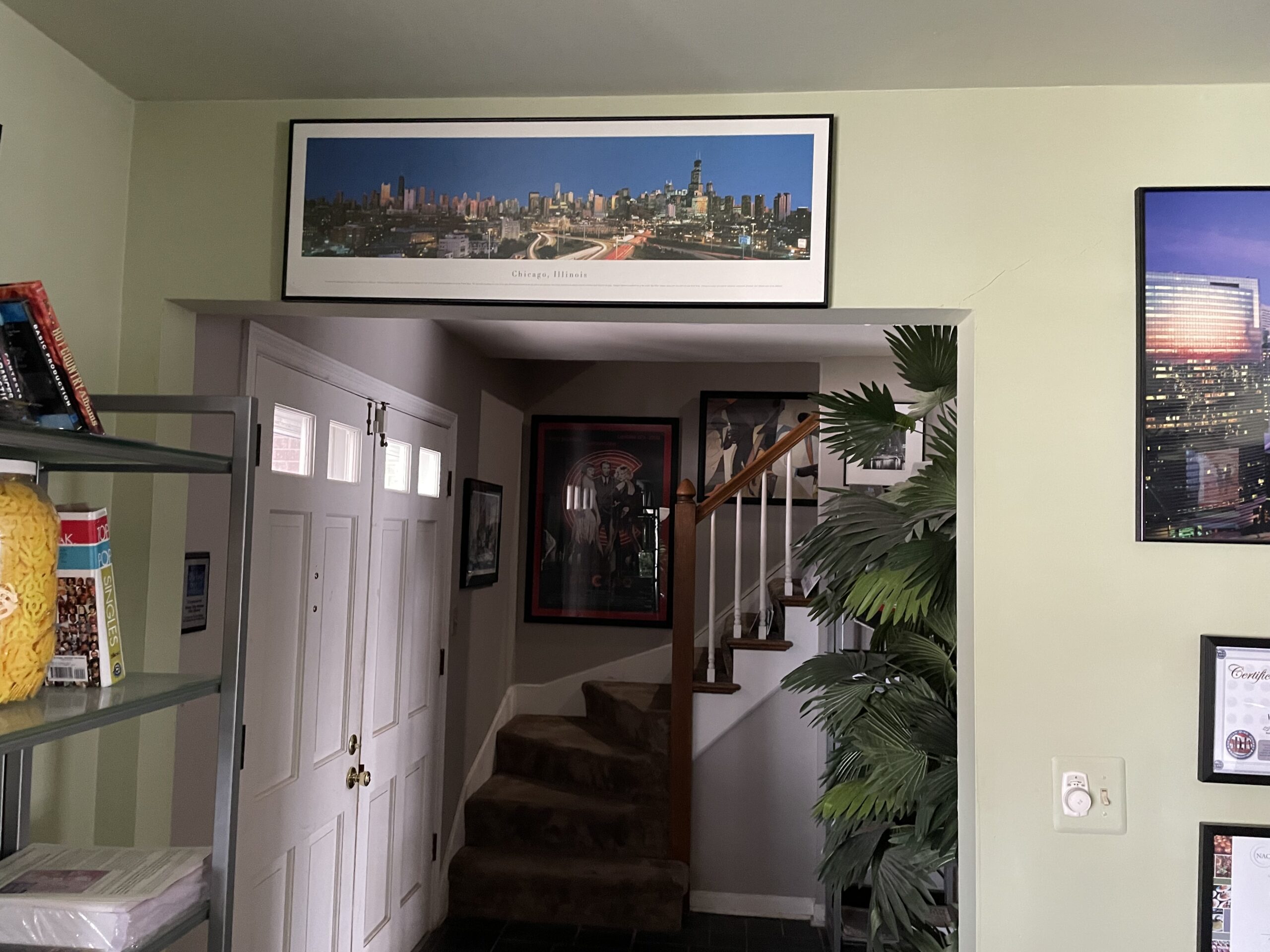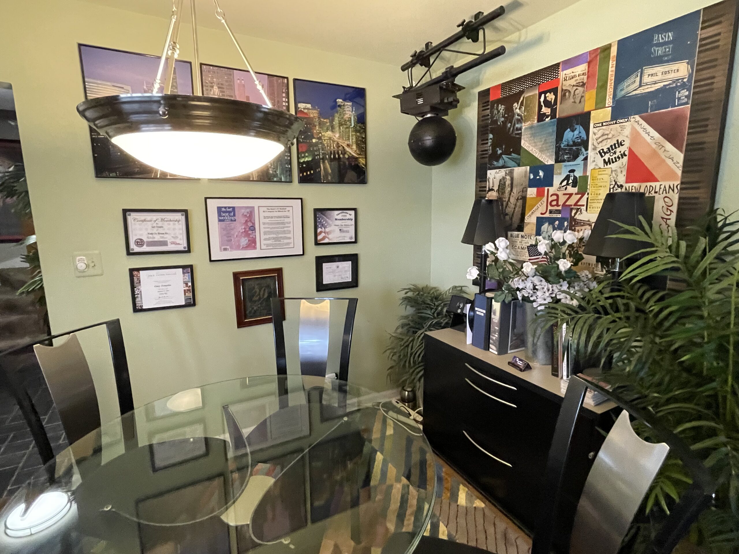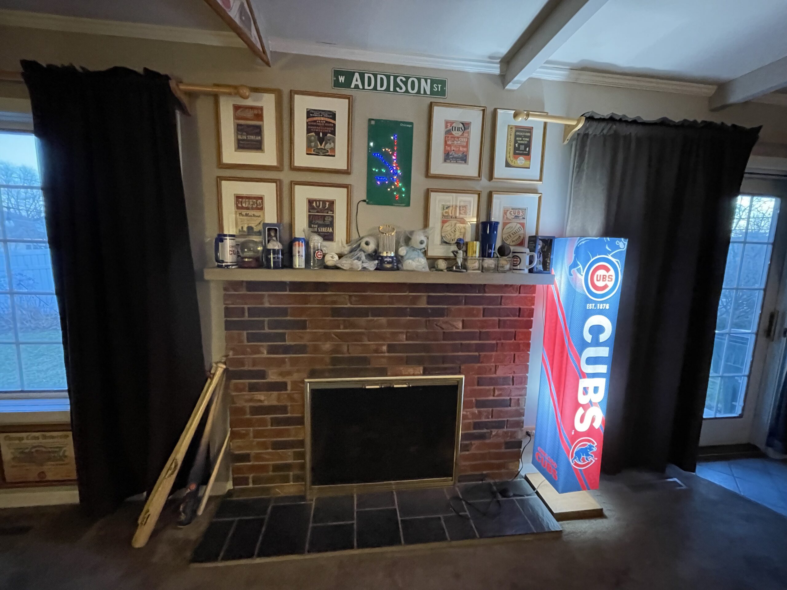 Special thought and attention to detail were given to each room's design. Many rooms have an individualized theme: sports/tropical basement, the “Cub” family room, Chicago/Jazz front room, DJ office dining room, the Western bedroom, and the upstairs library bedroom. After buying the house, it took Gary many months to strip wallpaper from every room, prepare and paint all the rooms, and then decorate the rooms appropriately.
